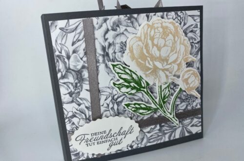 Habt ihr schon diese tolle Produktreihe „Garten Eden“ entdeckt? Ich finde diese Reihe sooo schön. Ich habe dazu mal ein kleines Set kreiert. Aus einem Minialbum und einer Kerzenverpackung aus den Anleitungen von Stempel & Co sowie 2 Täschen. Wie findet ihr dieses Set? ~ Sabrina